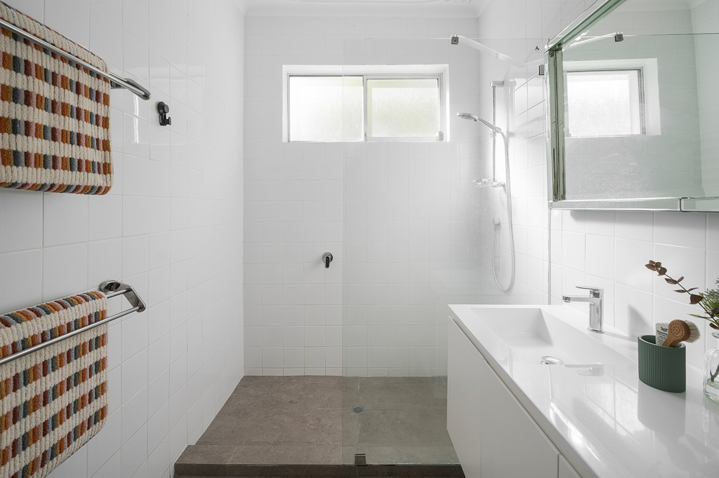 - Modern bathroom with walk in shower