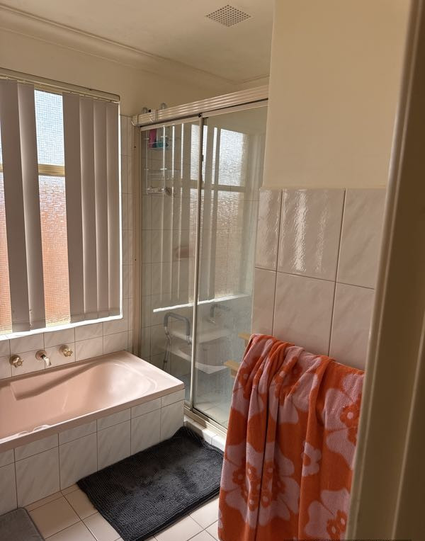 - Bathroom includes both bath and shower options and a separate toilet